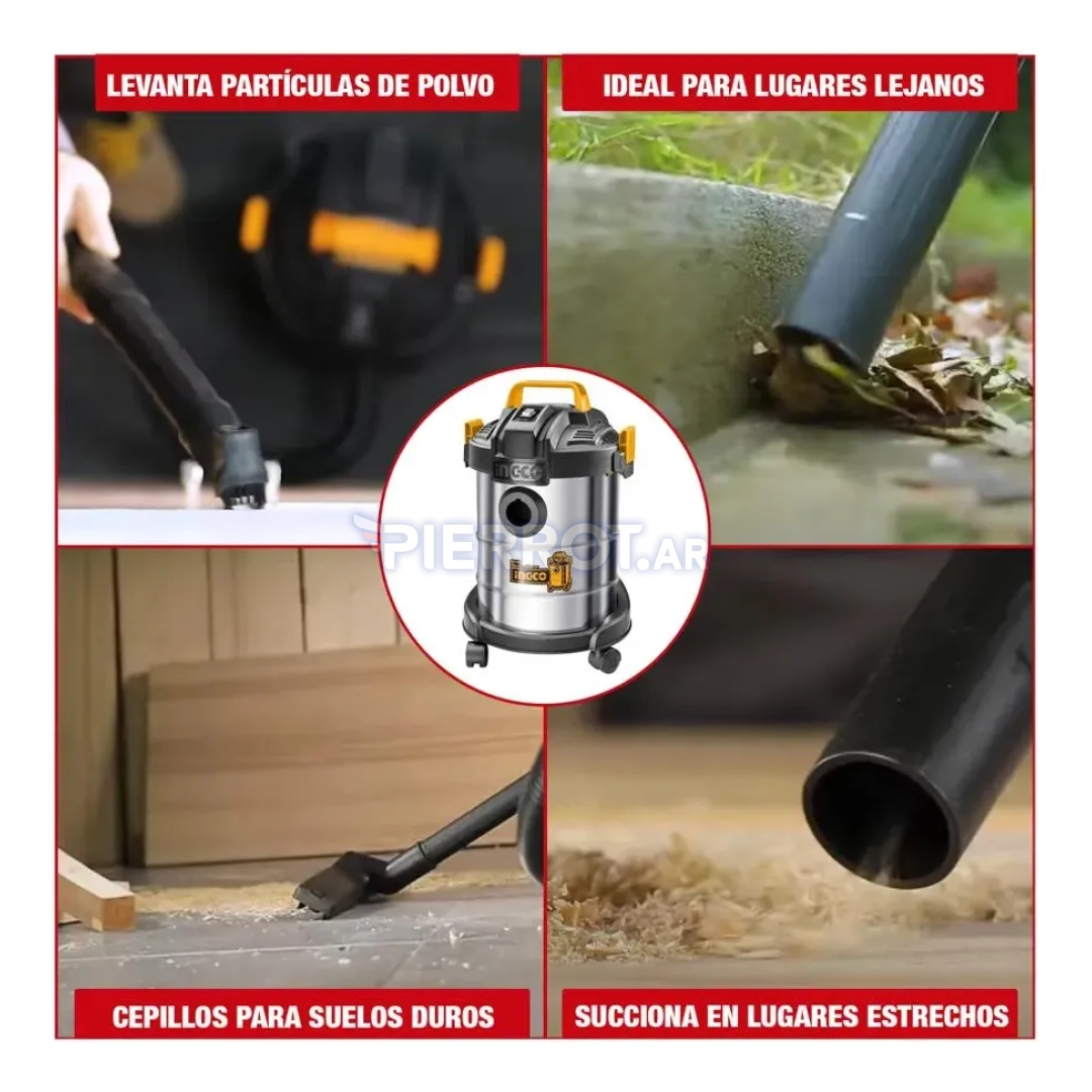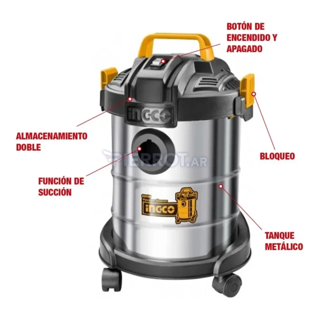 Aspiradora 12l 800w 220v Tanque Acero Inox. VC14122-4 Ingco - Pierrot