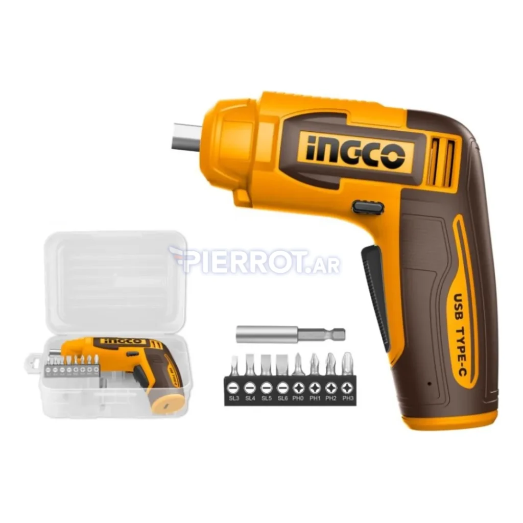 Con el Atornillador Inalámbrico de INGCO, cada proyecto se convierte en una tarea sencilla y eficiente. No deje pasar la oportunidad de añadir esta herramienta imprescindible a su colección. Recuerde que el cargador y el cable USB-C se venden por separado, permitiéndole utilizar sus propios dispositivos de carga para mayor conveniencia.