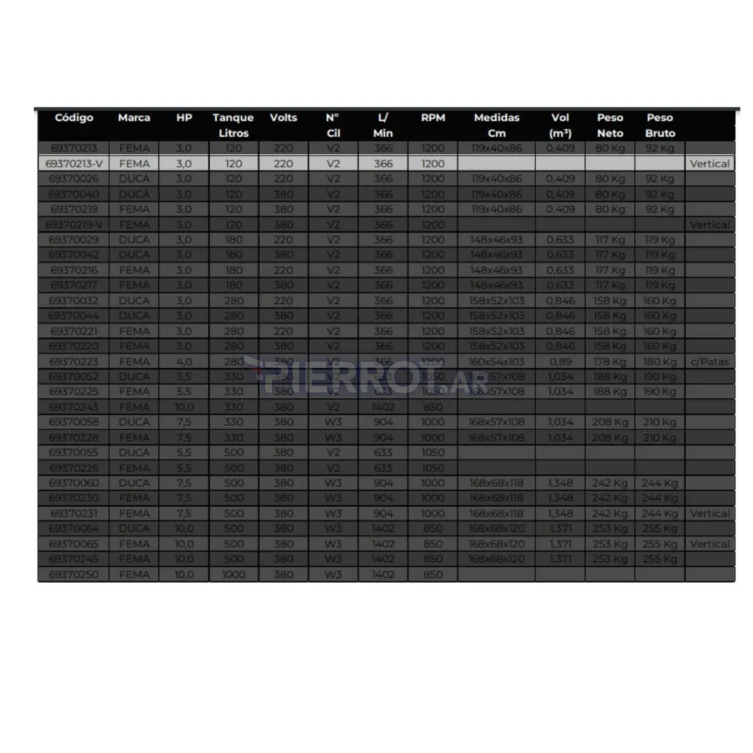 Compresor A Correa 120 Lts. 3 Hp 220 V Monofásico 69370213-V Fema - Pierrot