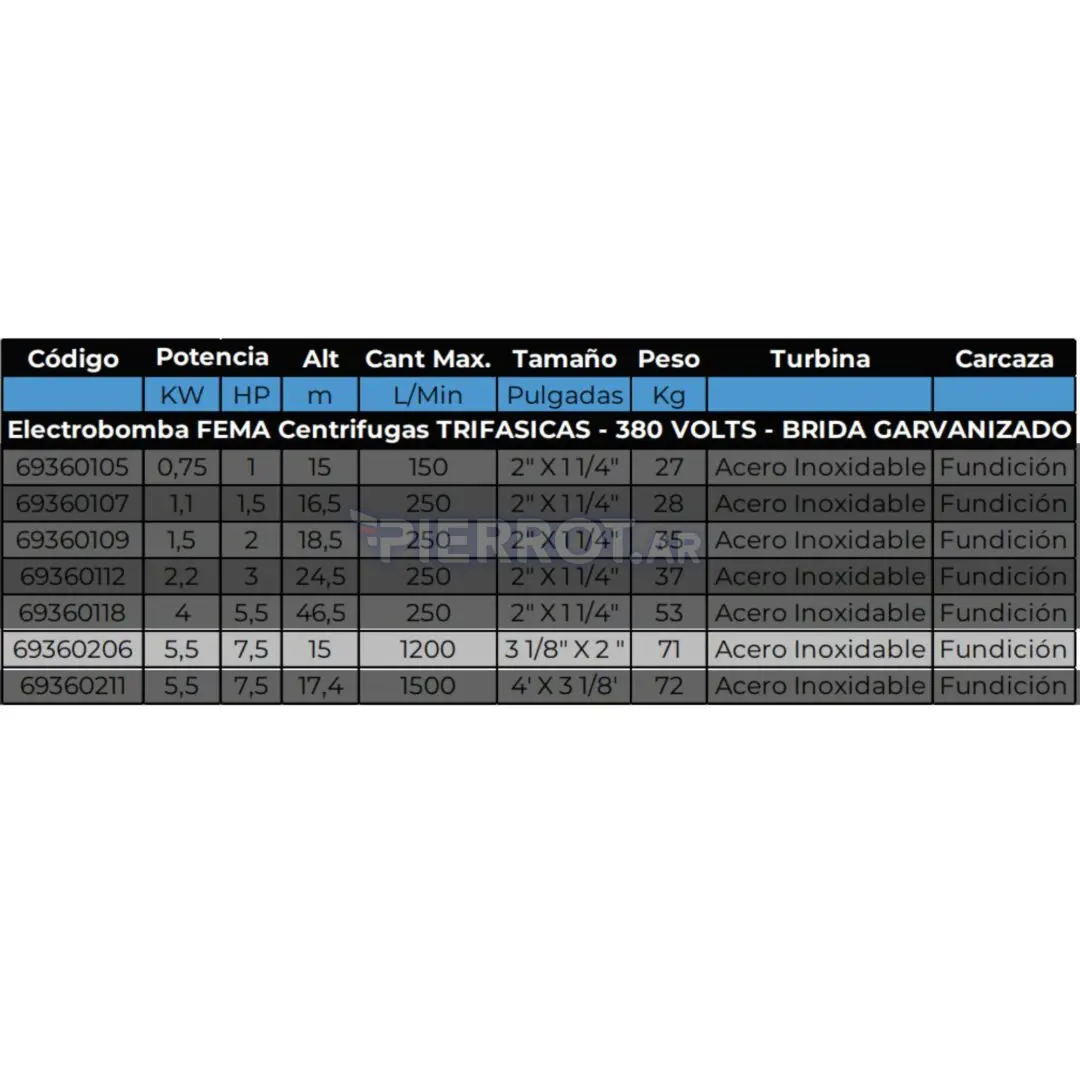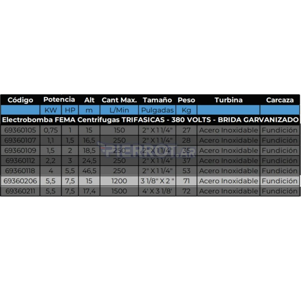 En resumen, la Electrobomba 7.5 Hp 380 V Centrífuga Turbina Acero Inox es una inversión inteligente para aquellos que buscan calidad, eficiencia y durabilidad en un solo producto. No pierda la oportunidad de mejorar sus operaciones de bombeo con esta extraordinaria herramienta.