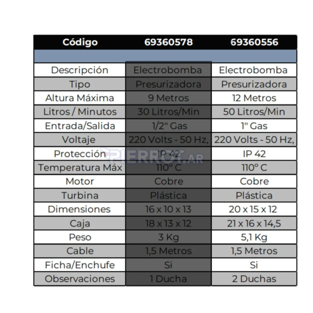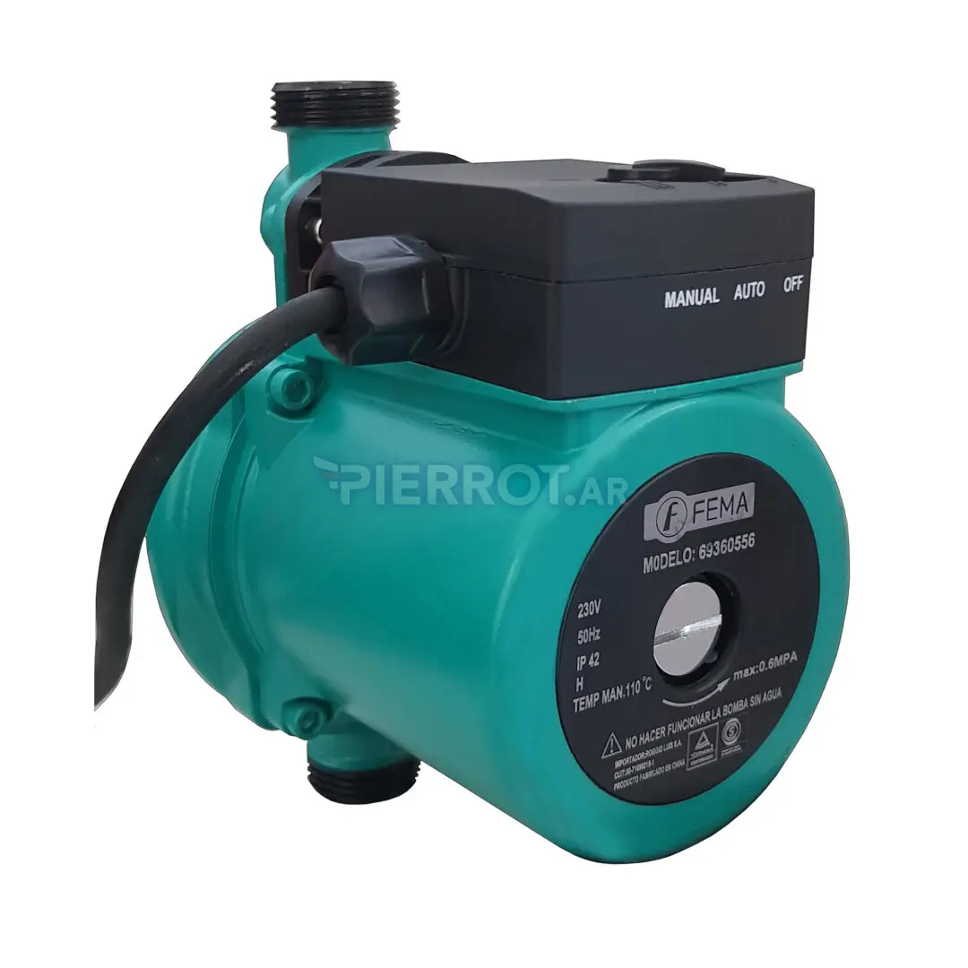 Fabricada con materiales de alta calidad, esta electrobomba es resistente y fácil de mantener. El motor de cobre asegura un funcionamiento silencioso y eficiente, mientras que la turbina plástica minimiza el riesgo de corrosión. Su diseño compacto permite una instalación sencilla en espacios reducidos, y el cable de 1,5 metros ofrece flexibilidad en la ubicación.
