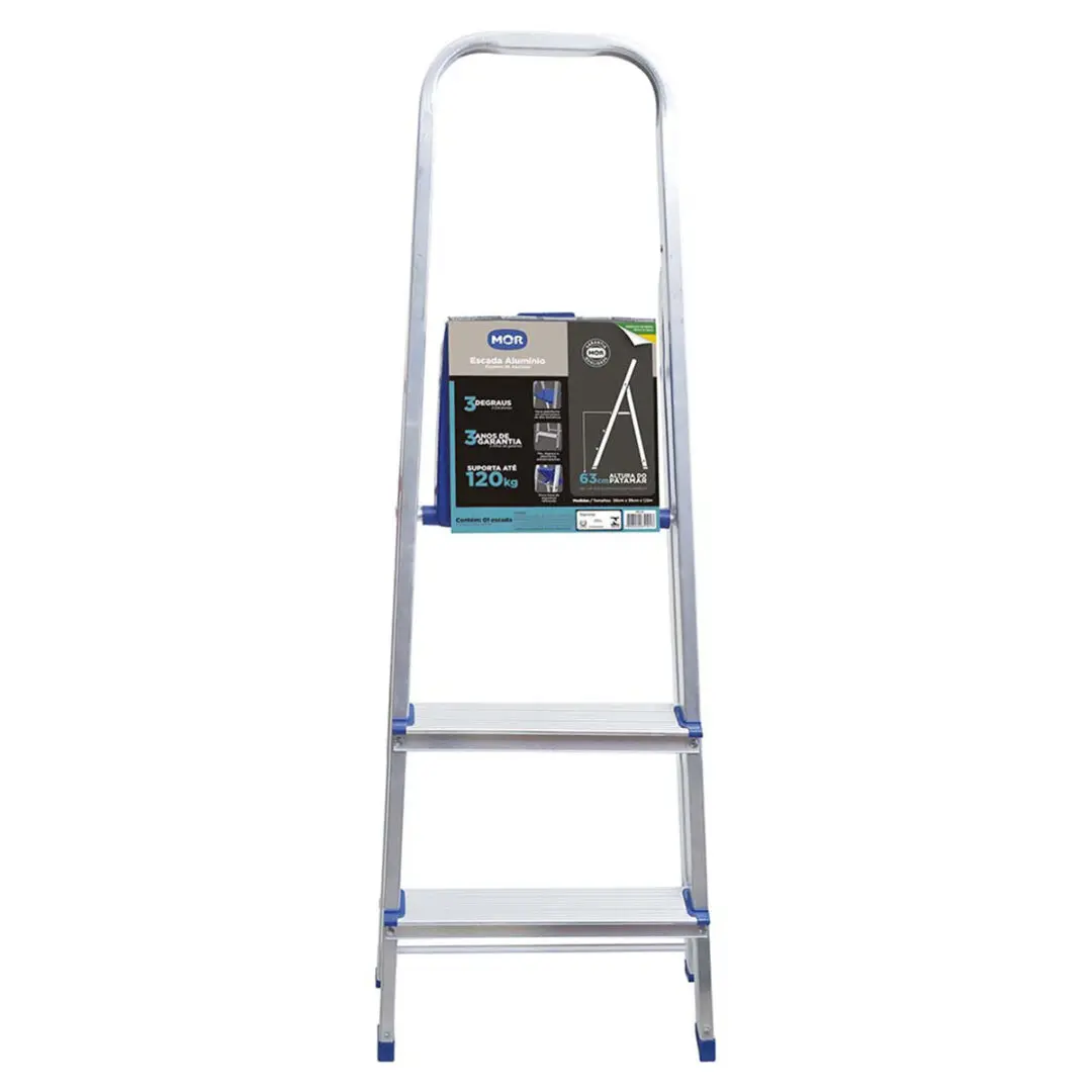 La escalera de aluminio para el hogar de 3 escalones es una herramienta esencial para cualquier tarea doméstica que requiera alcanzar alturas de manera segura y eficiente. Fabricada en aluminio de alta calidad, esta escalera ofrece durabilidad y ligereza, facilitando su transporte y manejo. Soporta un peso máximo de 120 kg, garantizando estabilidad y seguridad para el usuario. Sus dimensiones compactas de 56 cm de ancho, 39 cm de profundidad y 112 cm de altura permiten su uso en espacios reducidos, mientras que la altura hasta la plataforma de 63 cm proporciona un alcance adecuado para trabajos cotidianos. Con un peso de solo 2,42 kg, es extremadamente manejable y fácil de almacenar. Diseñada y fabricada en Brasil, esta escalera combina funcionalidad y diseño, convirtiéndola en una elección inteligente para su hogar.