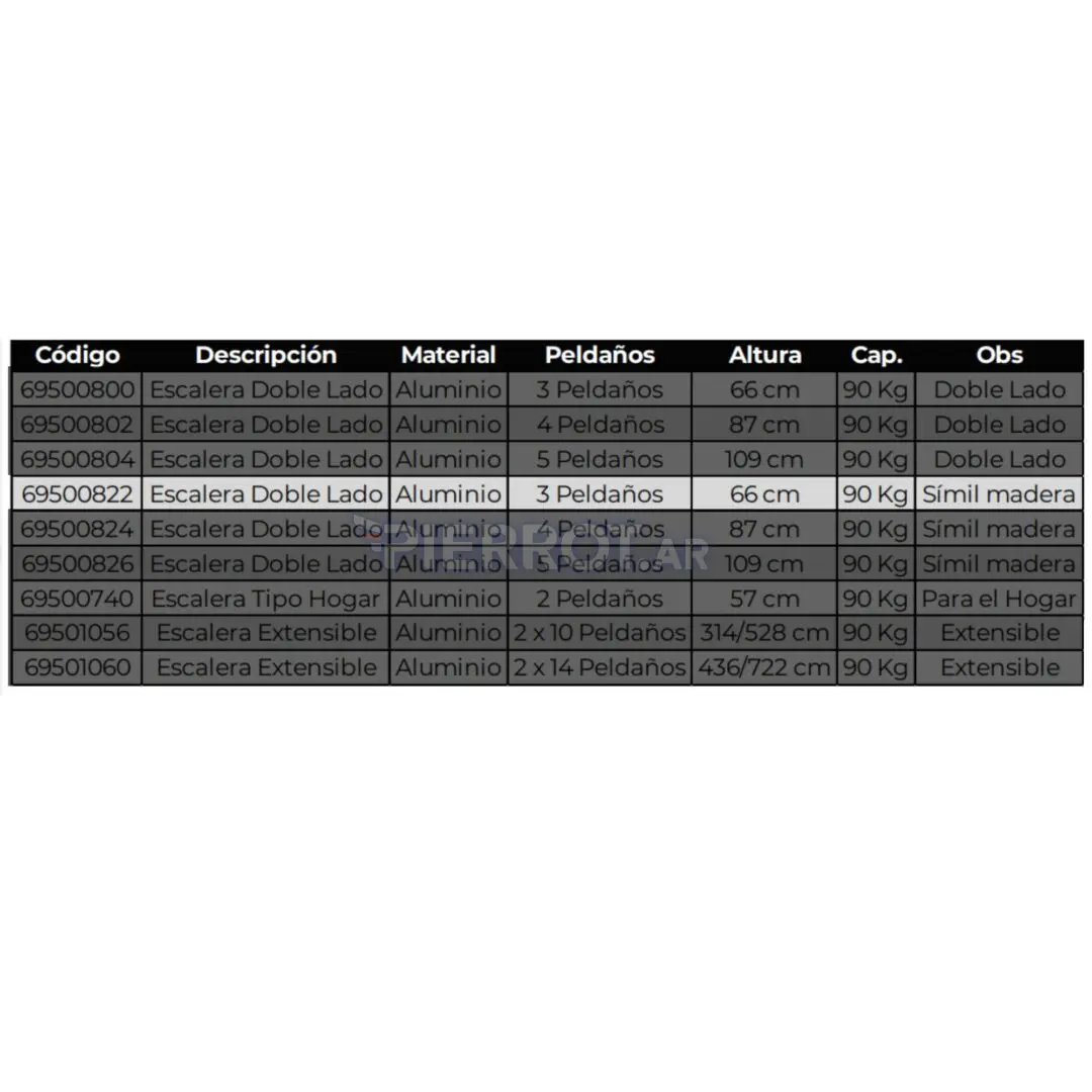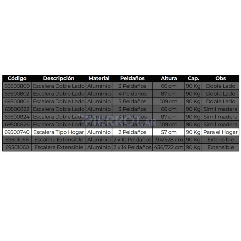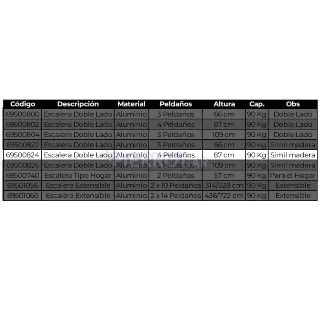 • Material de Alta Calidad: Fabricada en aluminio resistente, esta escalera ofrece durabilidad y seguridad, soportando hasta 95 kg.