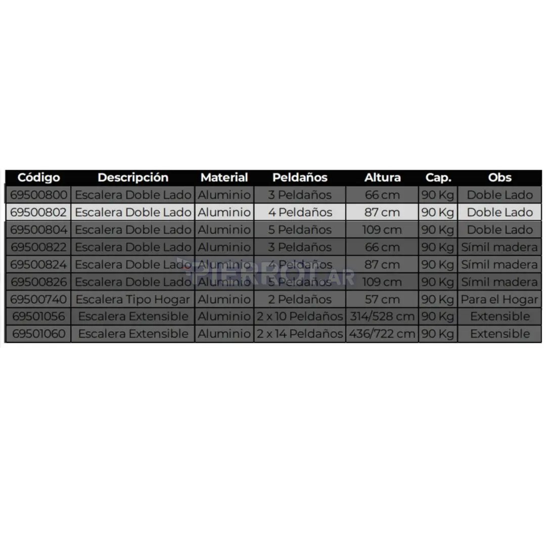 Fabricada en aluminio de alta calidad, esta escalera es resistente a la corrosión, lo que garantiza una larga vida útil. Además, su mantenimiento es mínimo, basta con limpiarla con un paño húmedo para mantenerla en perfecto estado. Su capacidad de plegado facilita el almacenamiento en espacios reducidos, como armarios o garajes.