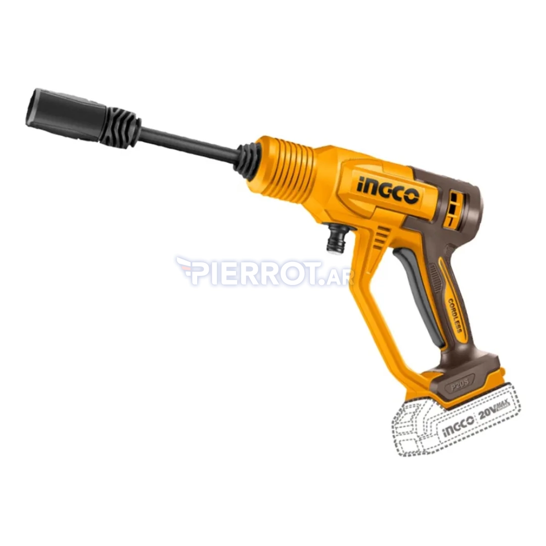 Fabricada con plásticos y metales tratados para resistir uso exterior. Se recomienda cargar la batería antes de cada uso y evitar ciclos completos de descarga prolongada para prolongar su vida útil. No sumergir la unidad ni exponerla a temperaturas extremas. Limpiar filtros y boquillas tras cada uso y usar detergentes compatibles si es necesario. Guardar en lugar seco y protegido del sol. Compatible con accesorios estándar de hidrolavadoras inalámbricas.