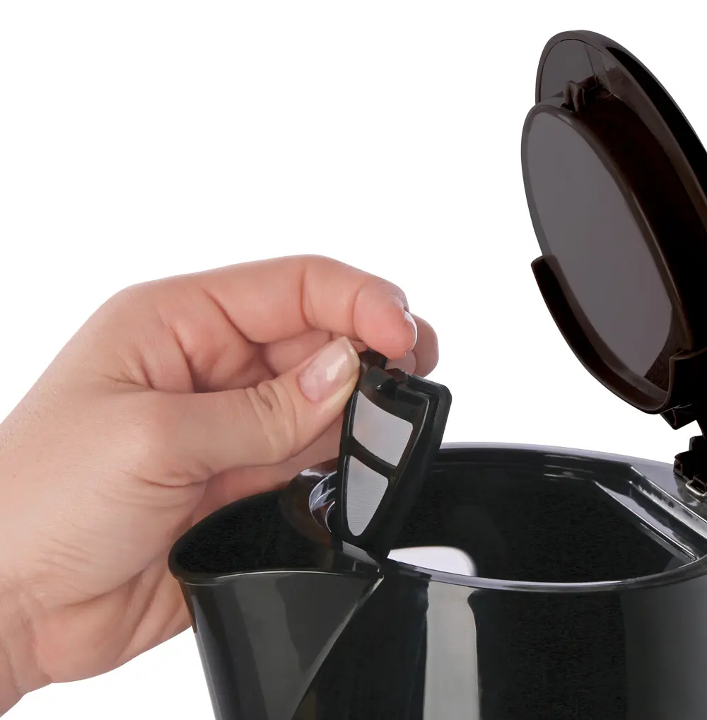 Entre sus características destacan una luz indicadora de funcionamiento y una base antideslizante con giro de 360º, facilitando su manipulación. El sistema de apertura de tapa es práctico y seguro, y el enrollacable permite un almacenamiento ordenado. Además, cuenta con un filtro que garantiza la pureza del agua.