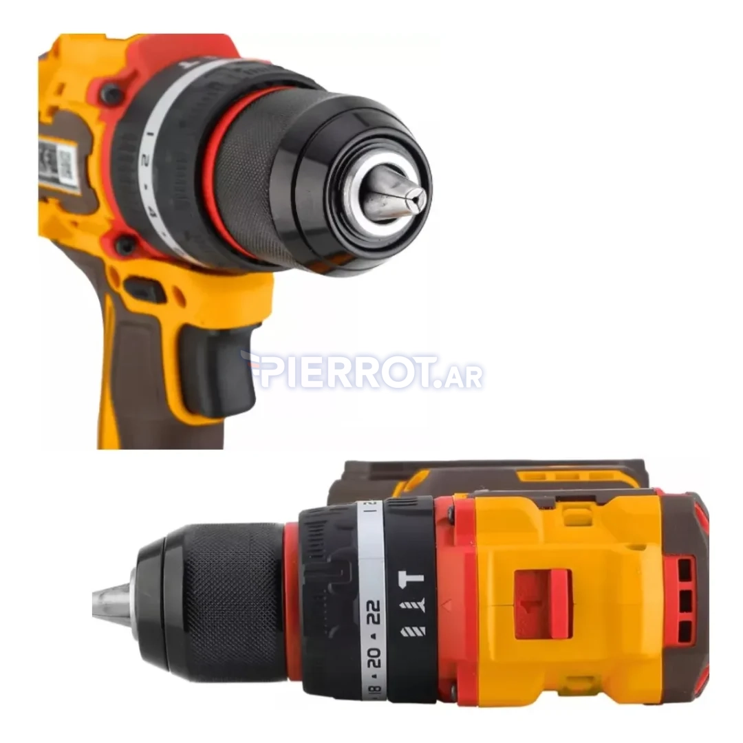El "Taladro Percutor 20 V 13 mm – Sin Carbones" ofrece beneficios inigualables. Su motor Brushless no solo mejora la eficiencia energética sino que también extiende la vida útil de la herramienta, asegurando que puedas llevar a cabo múltiples proyectos sin interrupciones. La variabilidad en las velocidades te permite ajustar la potencia según tus necesidades específicas, optimizando el rendimiento para cada material y aplicación.